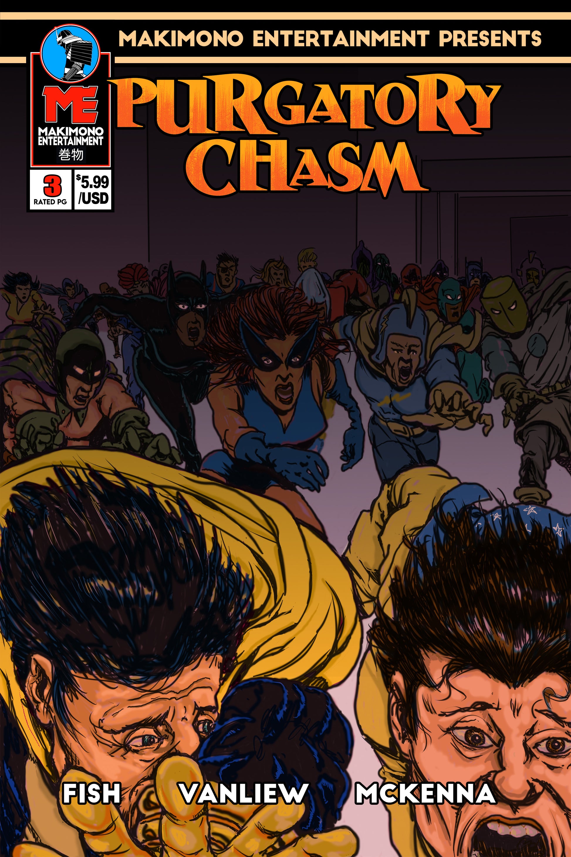 PURGATORY CHASM #03 - Superheroes often "die" in comics, but their deaths are never permanent. Have you ever wondered what happens to them while they're gone and before they return? Look no further than this thrilling comedy adventure, starring the one and only Amazing Louie the Jelly Ghost! by ANDY FISH (Story) TED VANLIEW (ART) & GREG McKENNA (Colors/Letters) ACTION | ADVENTURE | COMEDY . $3 or FREE with SILVER